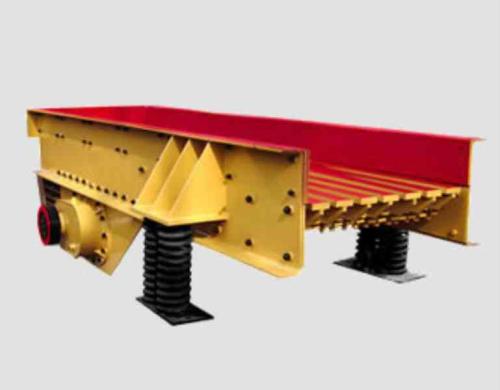 振動給料機又稱振動喂料機在生產流程中可把塊狀、顆粒狀物料從貯料倉中均勻、定時、連續地給到受料裝置中去在砂石生產線中可為碎石機械連續均勻地喂料并對物料進行粗篩分廣泛用于冶金、煤礦、選礦、建材、化工、磨料等行業的破碎篩分聯合設備中。